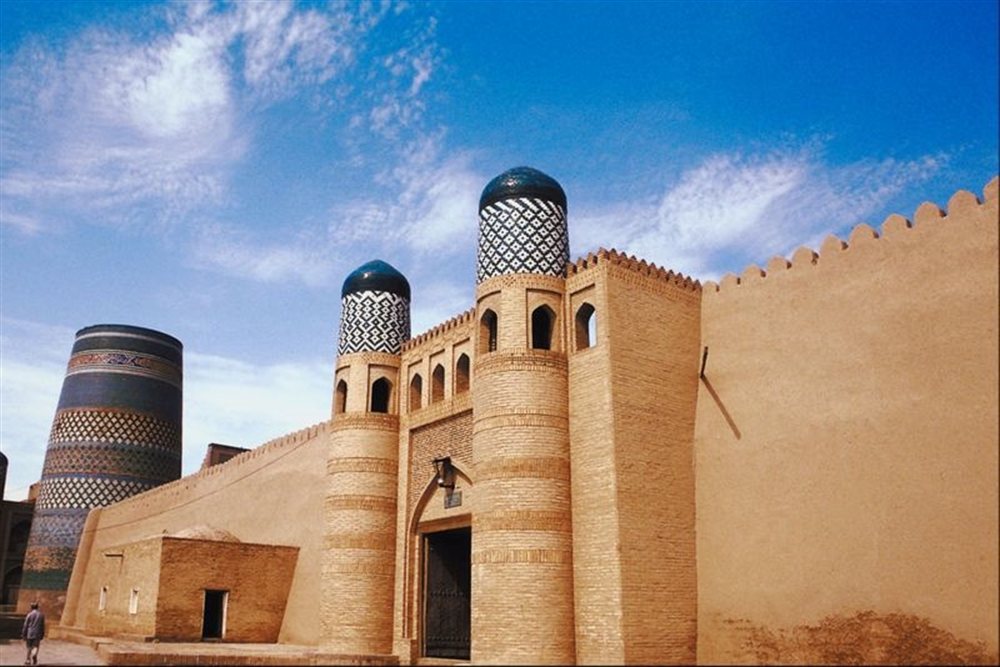 Media pensión. Desayuno y salida en coche hacia Khiva, atravesando el desierto Kizil-Kum, que significa "las arenas rojas". Para llegar de Bukhara a Khiva cruzaremos el histórico río Amudaria (este río junto al Sirdaria discurre más al norte marcando la frontera con Kazajstán, siendo los únicos abastecedores de agua del mar Aral). En el Valle del río Amudaria haremos una parada, desde donde tendremos una extraordinaria panorámica del valle. Llegada a Khiva y alojamiento en hotel. Resto de la tarde libre. Recomendamos pasear dentro de “ Ichan Qala”, ciudadela interior. Itchan–Kala fue incluida por la UNESCO, en 1990, en el Patrimonio Mundial de la Humanidad, por constituir un importante ejemplo de conservación de la arquitectura musulmana en el Asia Central. Cena en un restaurante local y noche en Khiva.