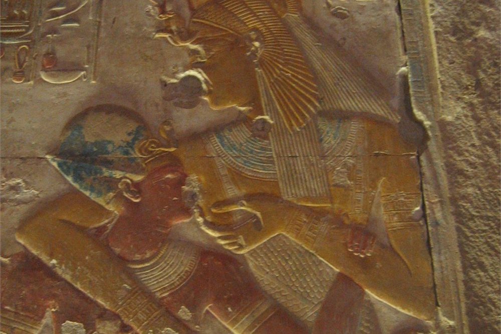 El primer tramo del recorrido nos lleva hasta Abidos, a unos 170 km al norte de Lúxor (aproximadamente 2 h 30 min por carretera). Esta ciudad fue uno de los centros religiosos más importantes del antiguo Egipto, lugar de culto del dios Osiris, señor del más allá y símbolo de la resurrección. Visitamos el impresionante Templo de Seti I, una de las obras maestras del arte faraónico. Construido en el siglo XIII a.C., este santuario destaca por sus relieves profundamente grabados, su atmósfera de recogimiento y su perfecta simetría. En su interior encontramos escenas mitológicas, rituales y la famosa Lista Real de Abidos, que recoge los nombres de 76 faraones, testimonio del respeto a la tradición dinástica. El templo también encierra un aura mística: se creía que aquí reposaban los restos de Osiris, lo que lo convirtió en un centro de peregrinación durante siglos.