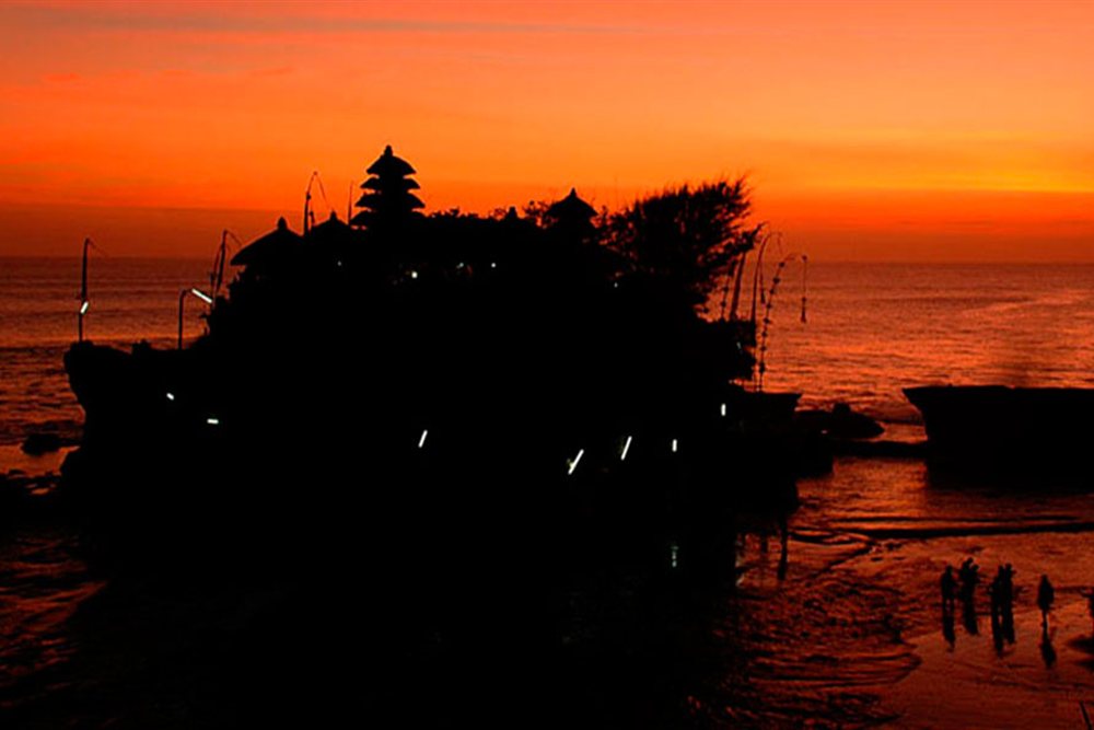 Casi en todos los folletos de turismo sobre Bali, aparece la preciosa foto del templo del lago Beratan y templo del mar Tanah Lot. Esta visita es una obligación. Aparte de dicho templo, se puede ver en vivo el templo del lago Ulundanu en un fresco ambiente en zona montañosa brisas del lago, vegetación y flores. En esta excursión se visita también: Taman Ayun el templo real más bonito de Bali, Alas Kedaton un templo adjunto al bosque de los monos y murciélagos gigantes (con las alas abiertas llegan a alcanzar 1 metro), a lo largo de la ruta se puede admirar el cambio de la vegetación de la zona de la playa hasta la zona montañosa: lo que es inevitable y básico es la vista de los arrozales escalonados, las palmeras que la mayoría son cocoteros, los arboles de rambutan, durian, salak, los campos de cacao, cafetales, vegetales,de las especies clavo, gindillas y si quiere, pued e verlo de cerca y probar sus productos en Candi Kuning. Al final visitaremos Tanah Lot, el templo del mar que esta construido encima de una roca, cuando sube la marea es como un islote. En un dí a bien despejado, podemos ver una vista fantástica: como una siluet a, el templo se ve oscuro con la puesta del sol detrás. Comida incluida en Restauran te internacional a lado del lago.