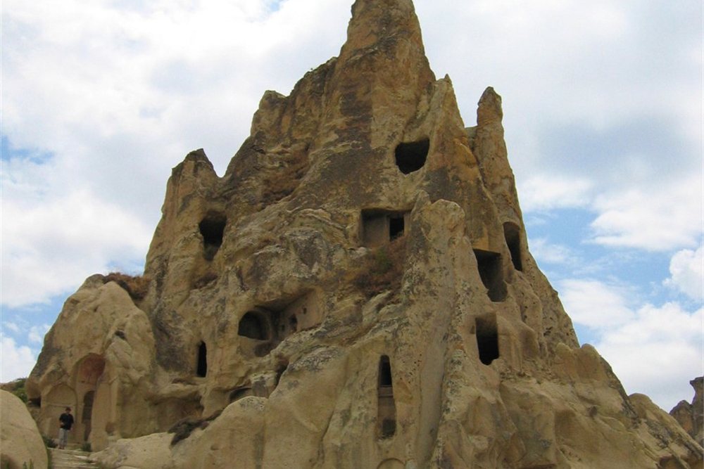 Media Pensión. Opcionalmente podrán realizar un espectacular paseo en globo aerostático al amanecer. Hoy visitaremos la región de Capadocia donde nació San Jorge; lugar único en el mundo que combina los caprichos de la Naturaleza con lugares de gran interés cultural. Comenzaremos nuestro recorrido con el paseo por el fascinante Valle de Devrent, conocido como el valle de las “chimeneas de hadas”, donde la piedra erosionada por el viento y por la acción del agua sobre terreno volcánico ha dado lugar a un paisaje espectacular formado por picos, conos y obeliscos. A continuación visitaremos la ciudad subterránea de Ozkonak u otra similar, construidas por las comunidades cristianas para protegerse de los ataques árabes. Haremos una parada en un taller de alfombras y kilims. Proseguimos para visitar el museo al aire libre de Göreme que conserva un impresionante conjunto de iglesias, capillas y monasterios excavados en la roca con frescos del siglo XI que fueron declarados Patrimonio de la Humanidad por la UNESCO. Por la tarde, visitaremos los espectaculares parejes volcánicos de Avcilar y Güvercinlik y admirarán una maravillosa vista panorámica del castillo de Uçhisar, situado en lo alto de un promontorio de roca volcánica perforado por túneles y ventanas. Haremos una parada en un taller artesano de decoración y joyas. Regreso al hotel. Cena y alojamiento. Por la noche, opcionalmente, podrán asistir a una ceremonia de derviches giróvagos.